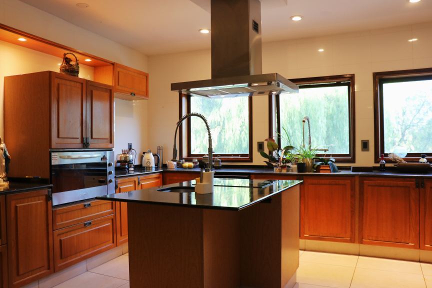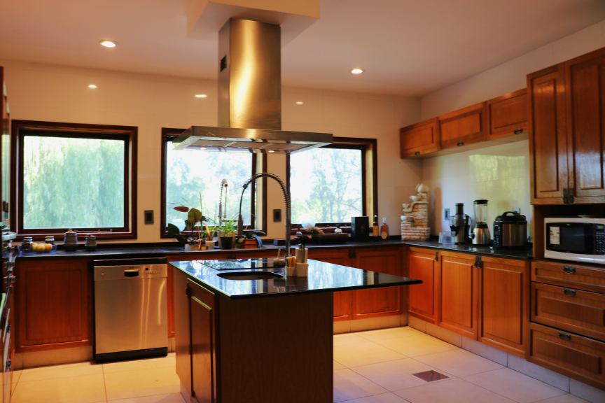 Cocina moderna con isla y despensa